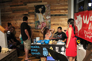The tour has made stops at Bohemeo’s, the Artery, BoomTown Heights, and EAT Gallery. They are each unique places with their own personality. Bohemeo’s has got a community center atmosphere with plenty of indoor and outdoor seating for groups and a permanent stage. The Artery is a secreted away performance paradise in the middle of Midtown. Boomtown Heights is a traditional arthouse coffee shop in a part of town that has badly needed one for a while. EAT Gallery has the feel of a sidewalk cafe with a motto that I wish I’d have used with my family at meal time, “Each item is a complete work of Culinary Art. NO MODIFICATIONS or substitutions”.
